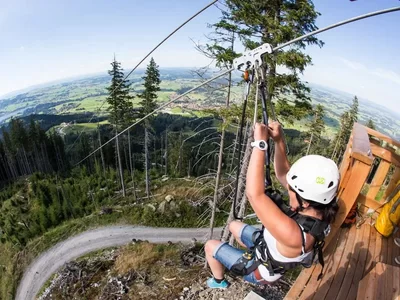 Der Sport- und Freizeitpark Alpspitz Kick verfügt hauptsächlich über eine Hauptattraktion: die längste Zipline Deutschlands mit 1,2 Kilometern Länge, die in zwei Sektionen von der Alpspitze bis zur Mittelstation talwärts führt. Außerdem gibt es einen Klettergarten, eine Sommerrodelbahn (AlpspitzCOASTER) und einen Abenteuerspielplatz. Weitere Attraktionen sind eine Ninja Line und eine Seilrutsche im Bereich Alpspitz Splash, einem Wasserpark-Angebot in der Nähe.