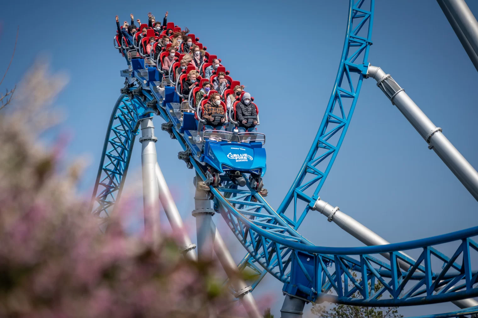 Auf der 1.000 Meter langen Strecke warten gleich vier Überkopf-Elemente, darunter der höchste Looping einer Katapultachterbahn in Europa. Dazu kommen eine 360°-Schraube und ein spektakulärer Hump durch den Looping – Adrenalin garantiert!