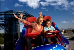 Mit bis zu 80 km/h stürzt Ihr in die Tiefe, die Gondel wirbelt Euch mal nach links, mal nach rechts. Es geht durch steile Auf- und Abfahrten, über blitzschnelle Geraden und enge Spiralen – sogar ein dunkles Tunnel-Erlebnis erwartet Euch! Eine Vollbremsung bringt Euch am Ende abrupt zum Stehen… und lässt Euch tief durchatmen. Bereit für die nächste Runde?