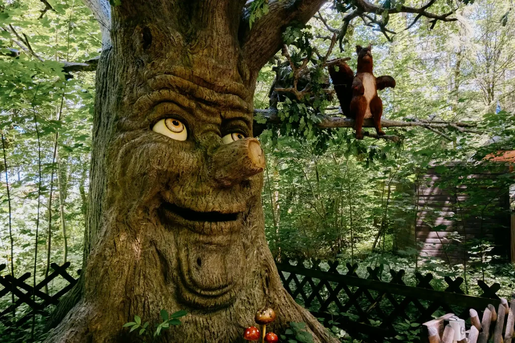 Mit rund 20 Attraktionen bietet der Märchenwald eine Vielzahl an Erlebnissen, die speziell auf die jüngeren Besucher zugeschnitten sind. Von liebevoll gestalteten Märchenhäusern bis hin zu kleinen Fahrgeschäften – hier gibt es viel zu entdecken.