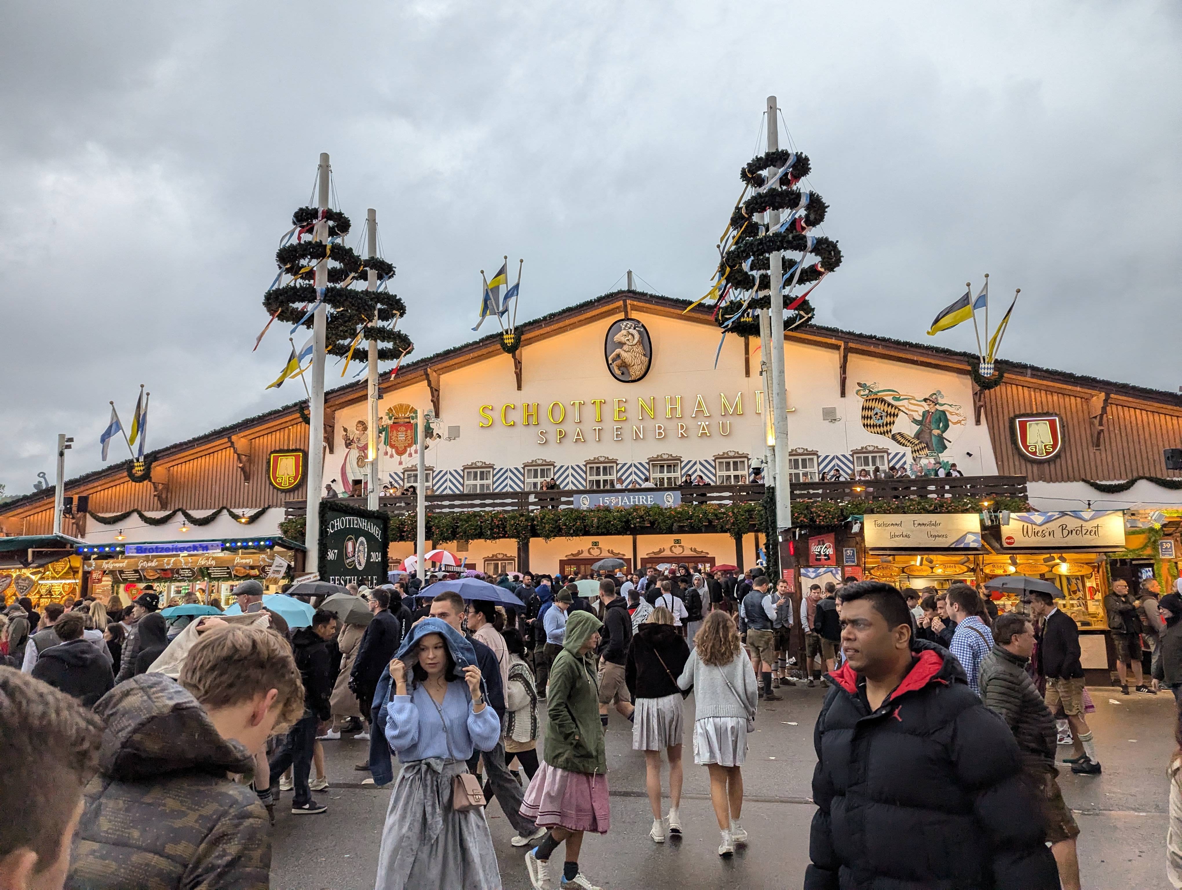 Die Schottenhammel-Festhalle gilt als das älteste Bierzelt auf dem Oktoberfest. Seit 1950 findet dort der traditionelle Anstich statt. Mit dem Ausruf „O'zapft is!“ nach dem Anstich des ersten Bierfasses um 12 Uhr mittags ist das Oktoberfest offiziell eröffnet. Der Oberbürgermeister der Stadt München übernimmt die Eröffnungszeremonie traditionell seit den 1950er-Jahren.