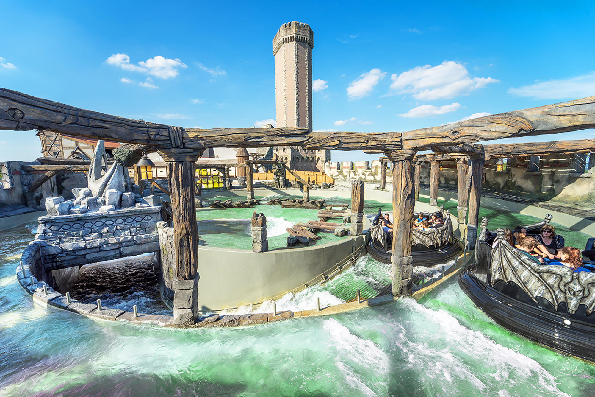 Die Gestaltung der Anlage orientiert sich an einer von Wasser zurückeroberten Burgruine mit passender Felslandschaft und thematischen Details. Die Boote drehen sich während der Fahrt unkontrolliert, wodurch der Wasseraufprall für jede Sitzposition unterschiedlich ausfällt.
