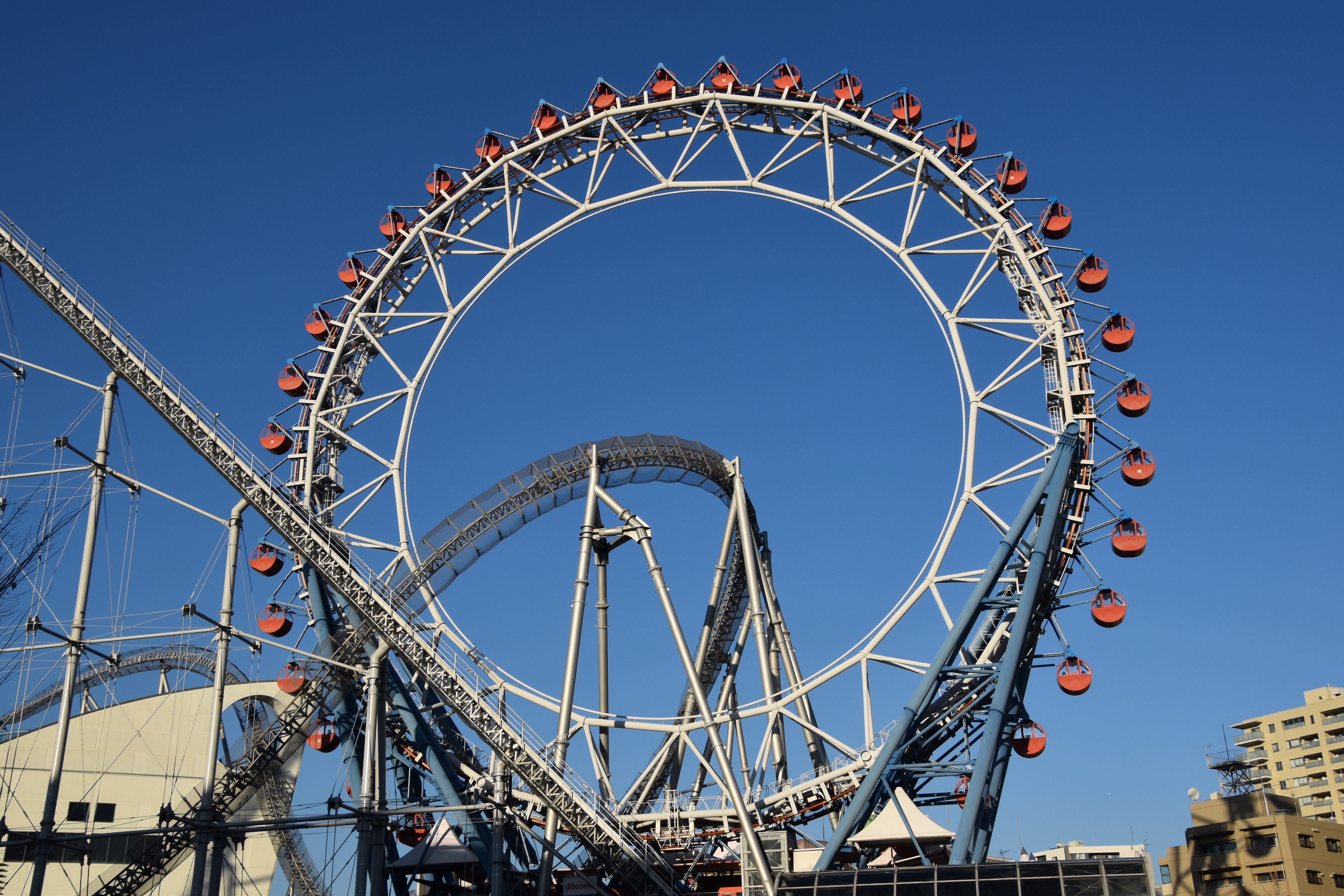 Das Big-O ist das weltweit erste zentrierlose Riesenrad in der LaQua-Zone der Tokyo Dome City. Mit 60 m Durchmesser bietet es eine 15-minütige Fahrt auf 80 m Höhe, durch die das Thunder Dolphin-Rollercoaster rast. Alle 40 Gondeln haben Karaoke-Anlagen für ein einzigartiges Erlebnis über Tokio.