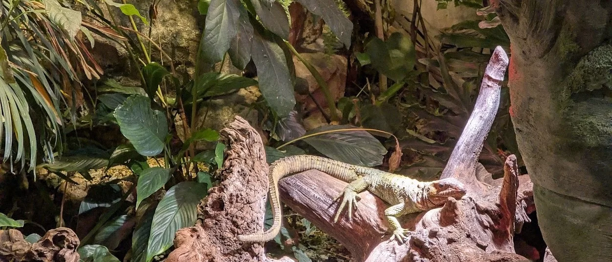 Gleich zu Beginn tauchen Besucher in eine üppige Tropenlandschaft ein. Zwischen exotischen Pflanzen bewegen sich frei laufende Tiere wie Kattas, bunte Vögel und Reptilien. Die Kombination aus Pflanzenvielfalt, Wärme und Geräuschkulisse vermittelt echtes Dschungel-Feeling und macht den Rundgang besonders intensiv.