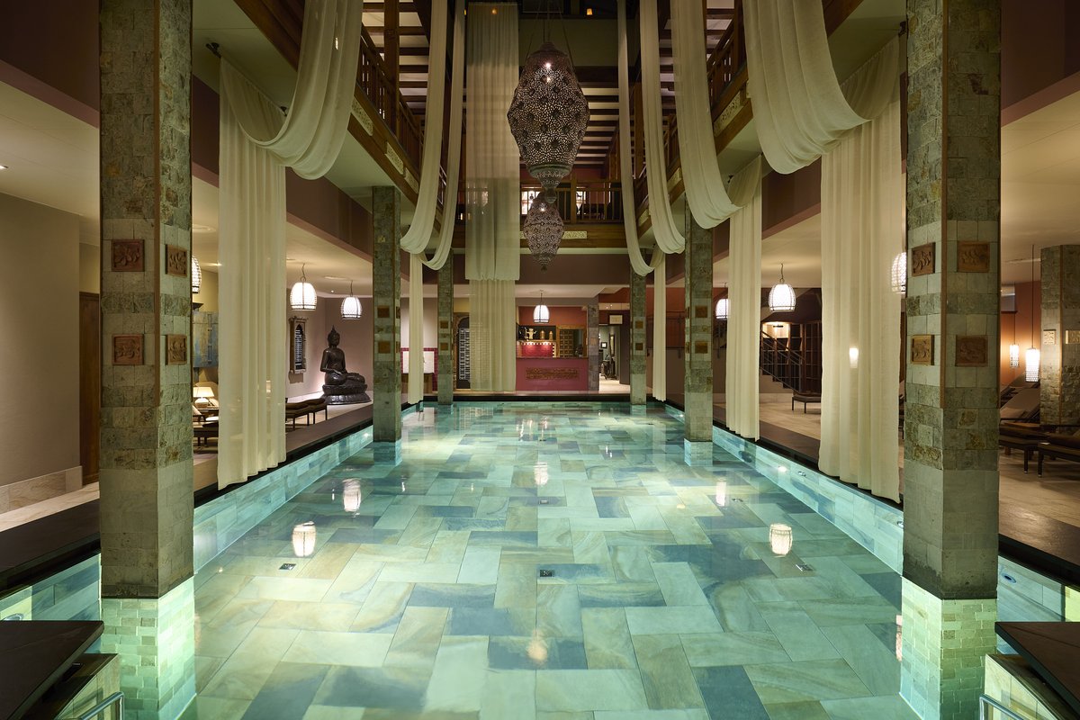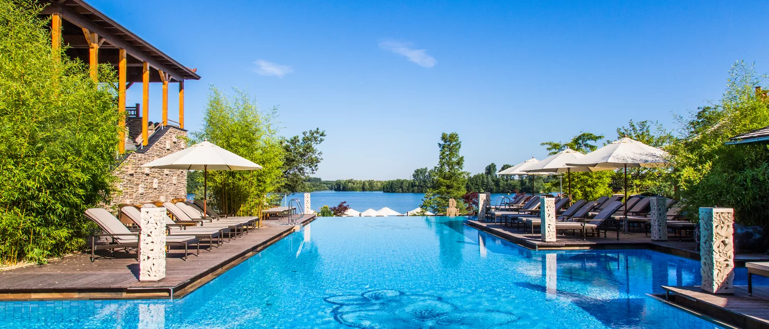 Vabali Spa Düsseldorf ist eine weitläufige Wellness-Oase am Elbsee, die durch ihre authentische balinesische Architektur und ein umfangreiches Sauna- und Entspannungsangebot besticht.