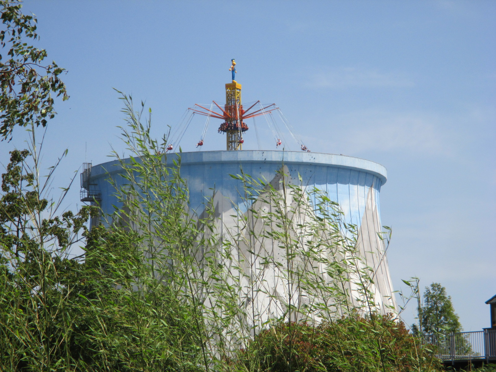 Erlebe den Nervenkitzel pur: Der 58 m hohe Vertical Swing im Kühlturm hebt dich in schwindelerregende Höhen – Adrenalinkick und Aussicht inklusive!